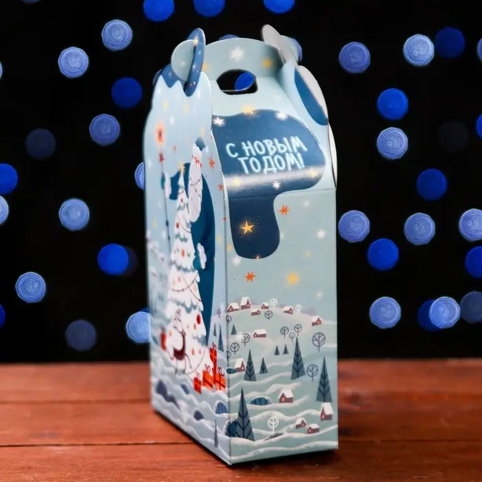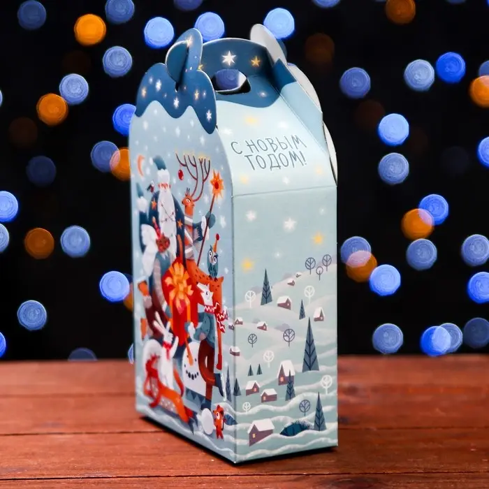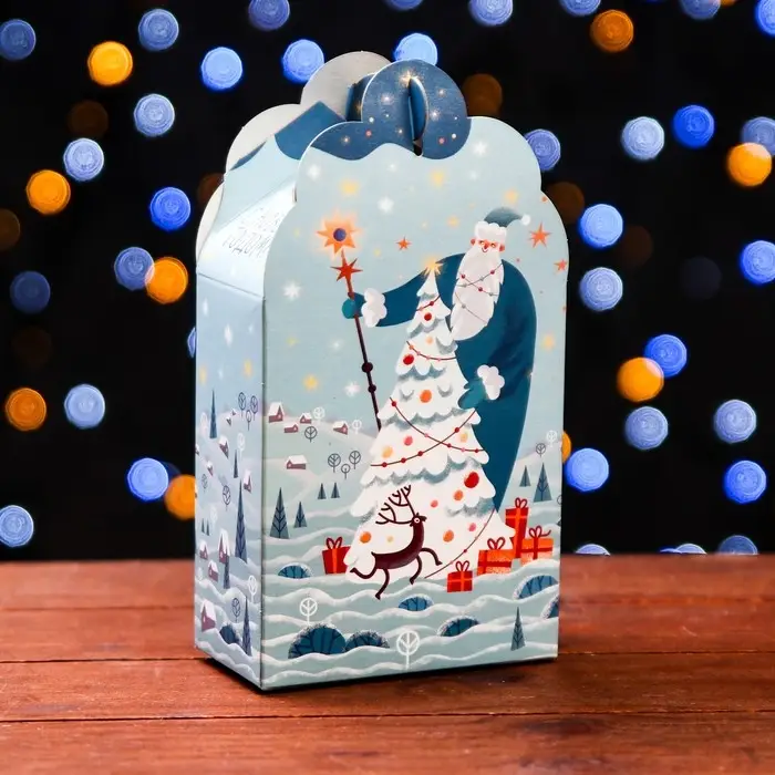 Коробка выполнена из качественных материалов, которые обеспечивают сохранность содержимого. Она имеет яркий и красочный дизайн, который отражает атмосферу Нового года.