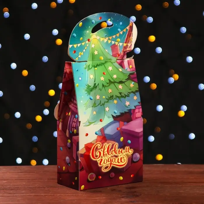 Коробка выполнена из качественных материалов, которые обеспечивают сохранность содержимого. Она имеет яркий и красочный дизайн, который отражает атмосферу Нового года.