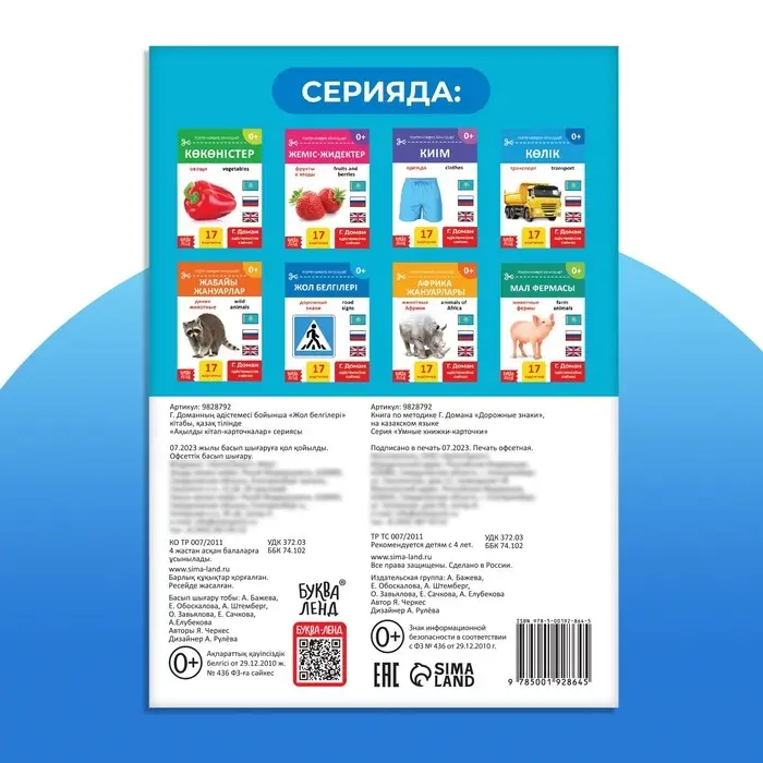 Книга по методике Г. Домана «Дорожные знаки», на казахском языке