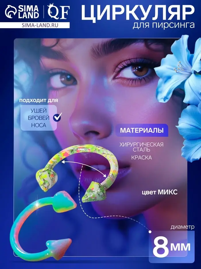 Пирсинг в бровь «Стрелы» дуо круг, d=0.8 см, МИКС (фасовка 20 шт.)
