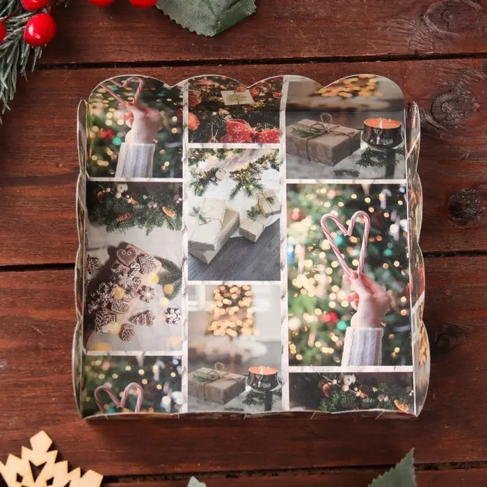Праздничная подарочная коробка для печенья, выполненная в новогоднем стиле, является идеальным выбором для упаковки и презентации макарун и других десертов. Она представляет собой сочетание элегантности и функциональности, сочетая в себе привлекательный дизайн и надежную конструкцию.