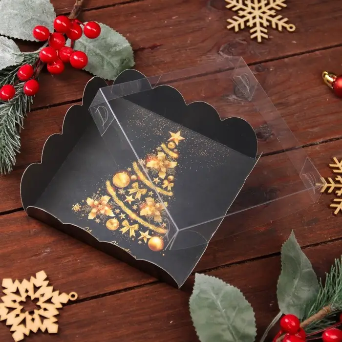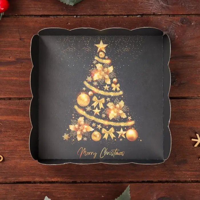 Коробка для печенья, кондитерская новогодняя упаковка, «Елка желаний», 12×12×3 см