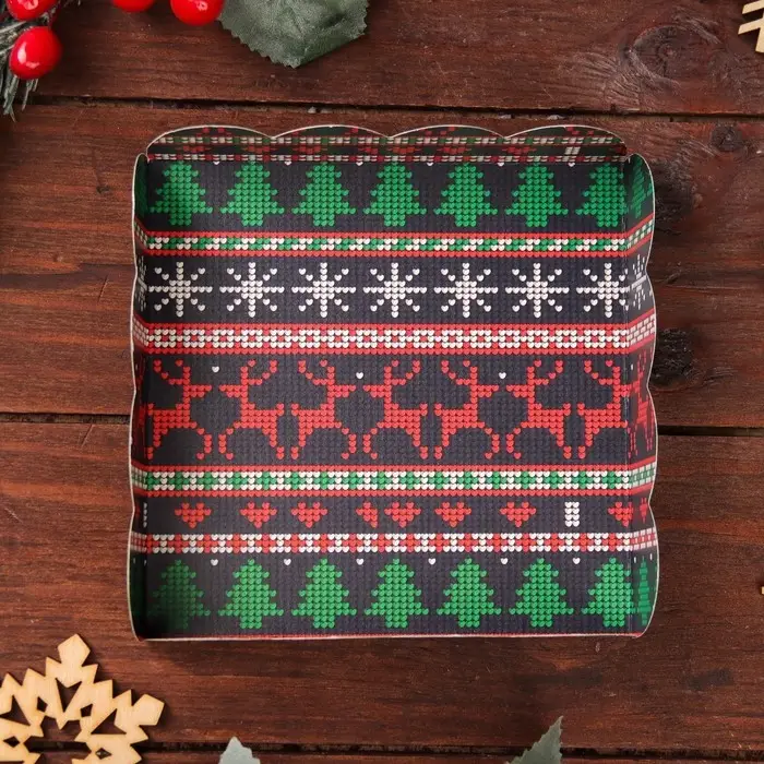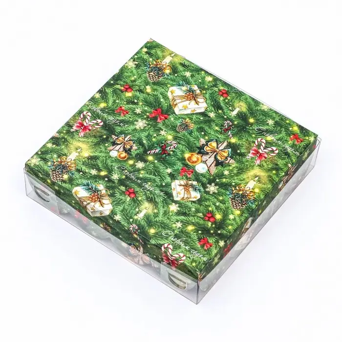 Коробка для печенья, кондитерская новогодняя упаковка, «Елочные украшения», 12×12×3 см