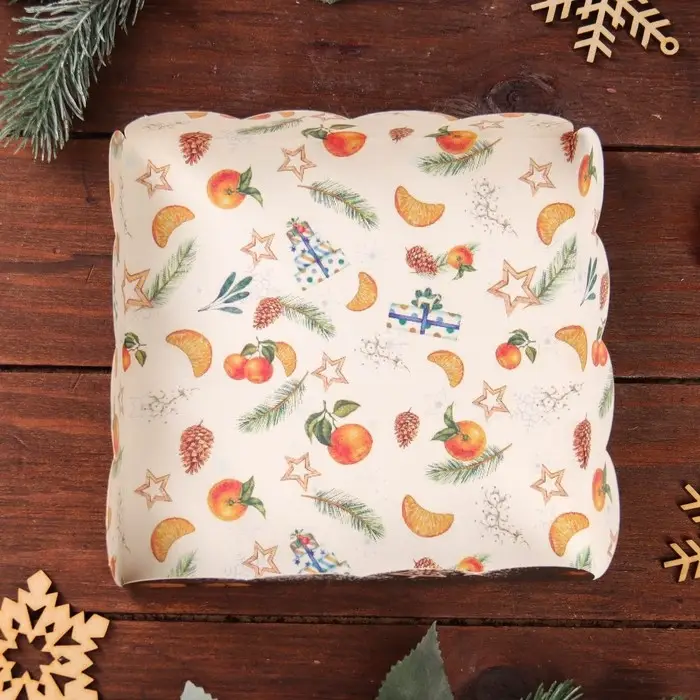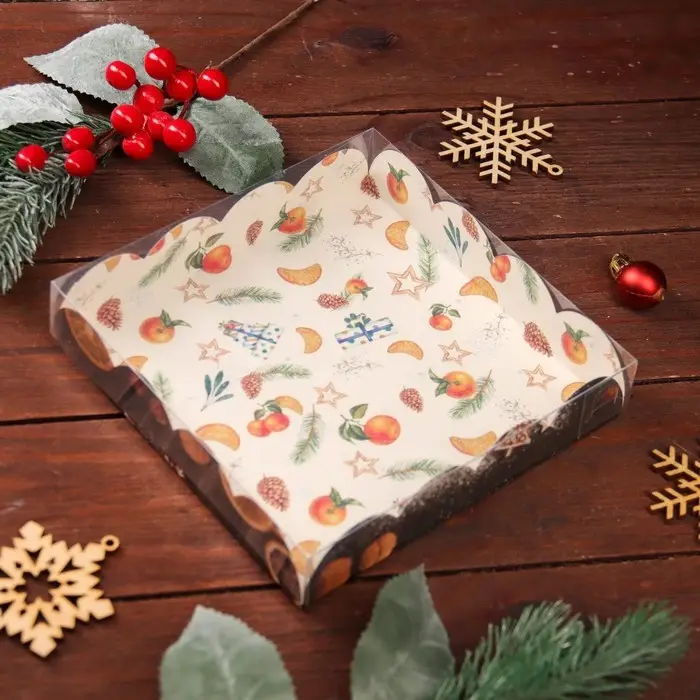 Коробка для печенья, «Мандарины», 15×15×3 см, Новый год