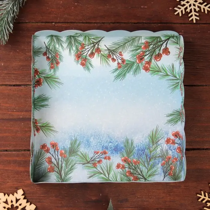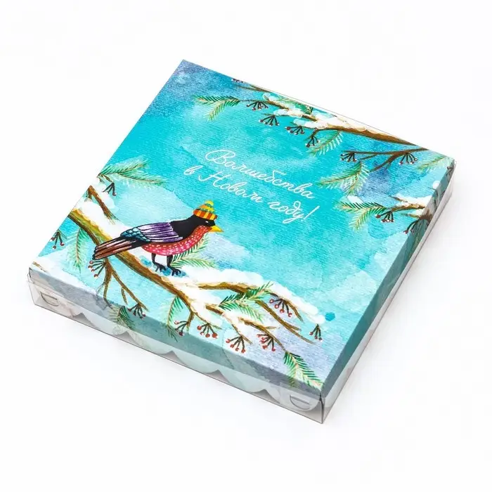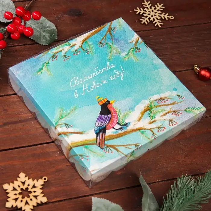 Коробка для печенья, «Снегири», 18×18×3 см, Новый год