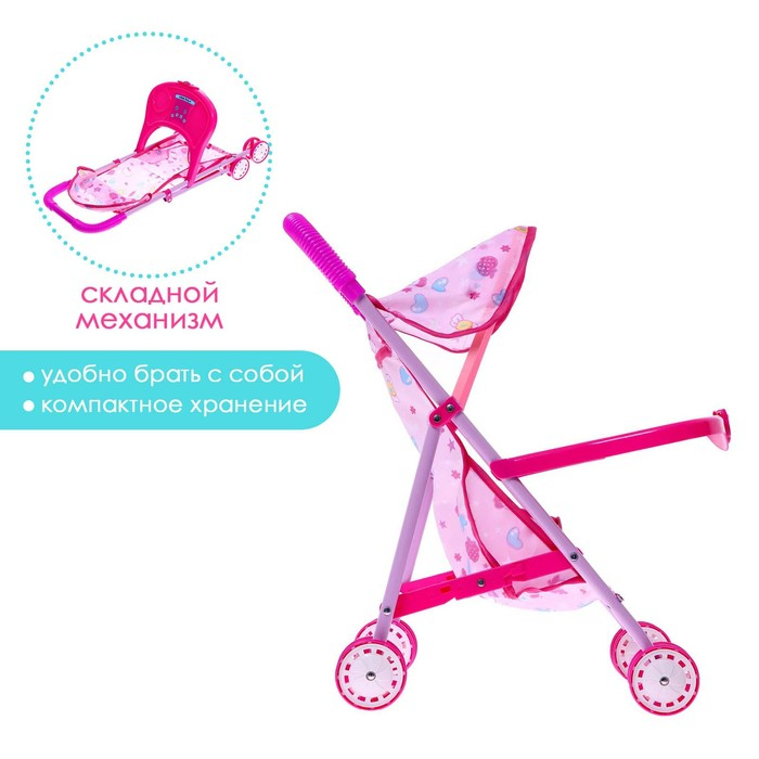 Коляска для кукол «Сладкий зайчик» универсальная, с корзиной и сумкой