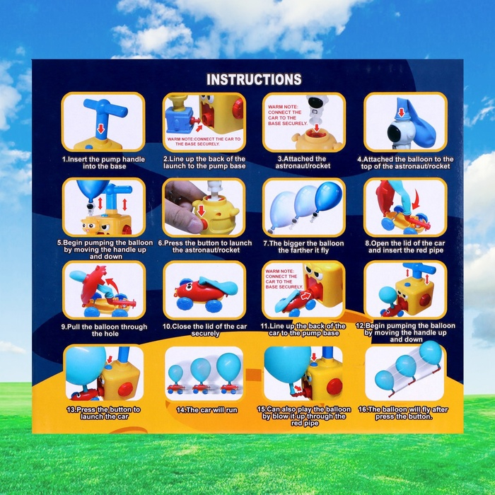 Игровой набор Balloon Car — это самая необычная гоночная установка! Малышу предстоит надувать шарики специальным насосом и запускать машинку в путь. Набор поможет развить у ребёнка мелкую моторику, координацию и мышление.