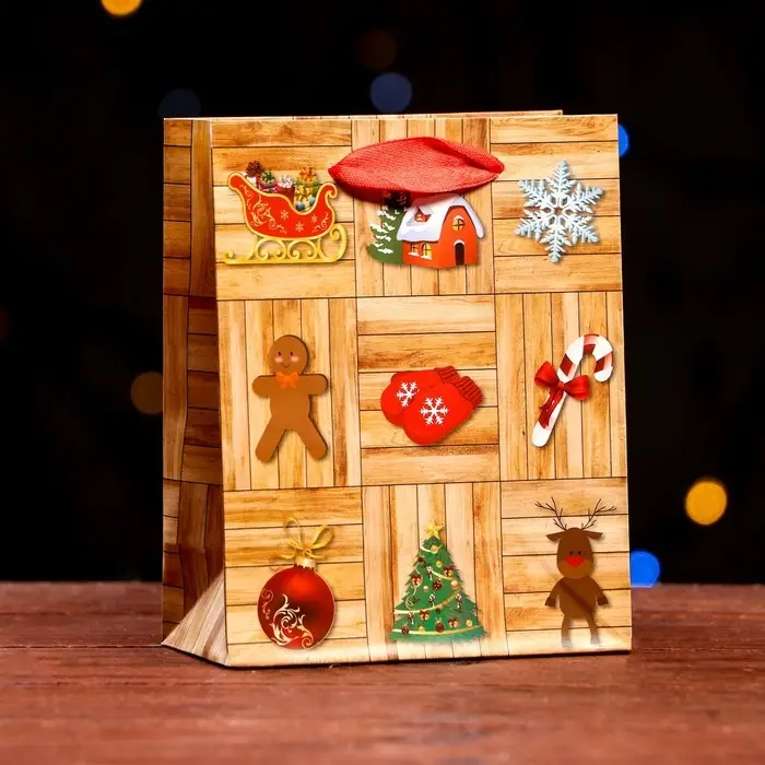 Стильный новогодний пакет с ламинацией используют как упаковку для подарка. Благодаря своему оригинальному дизайну и привлекательному внешнему виду он создаст праздничное настроение получателю и не оставит его равнодушным.