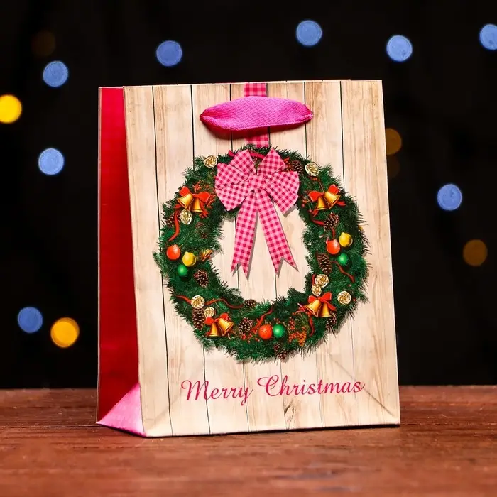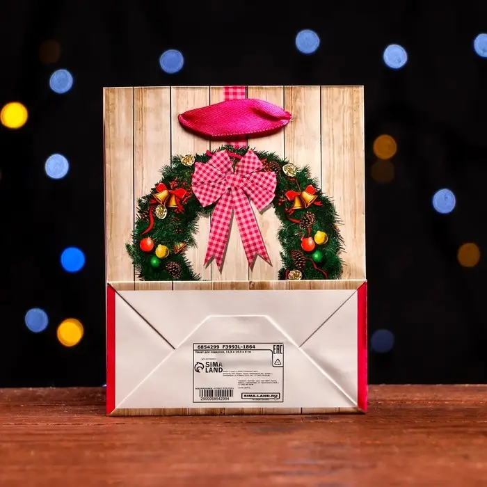 Пакет ламинированный «Новогодний венок» 11.5×14.5×6 см