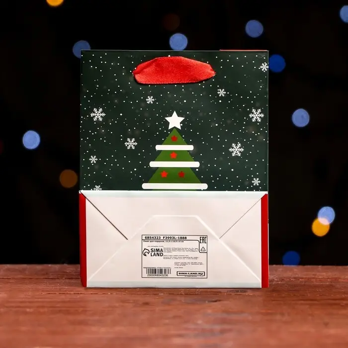 Стильный новогодний пакет с ламинацией используют как упаковку для подарка. Благодаря своему оригинальному дизайну и привлекательному внешнему виду он создаст праздничное настроение получателю и не оставит его равнодушным.