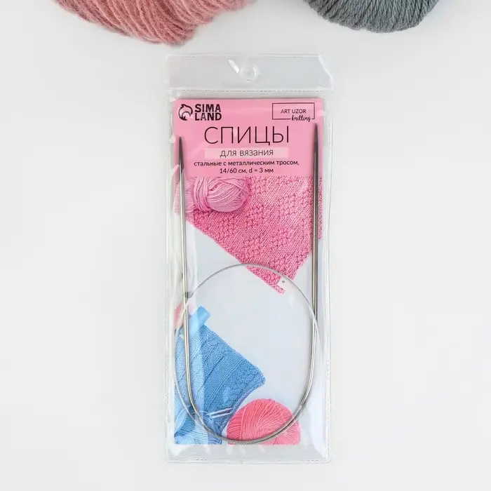 Спицы круговые, для вязания, с металлическим тросом, d=3 мм, 14/60 см