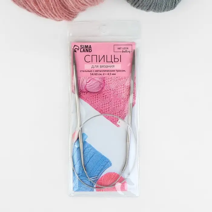 Спицы круговые, для вязания, с металлическим тросом, d=4.5 мм, 14/60 см