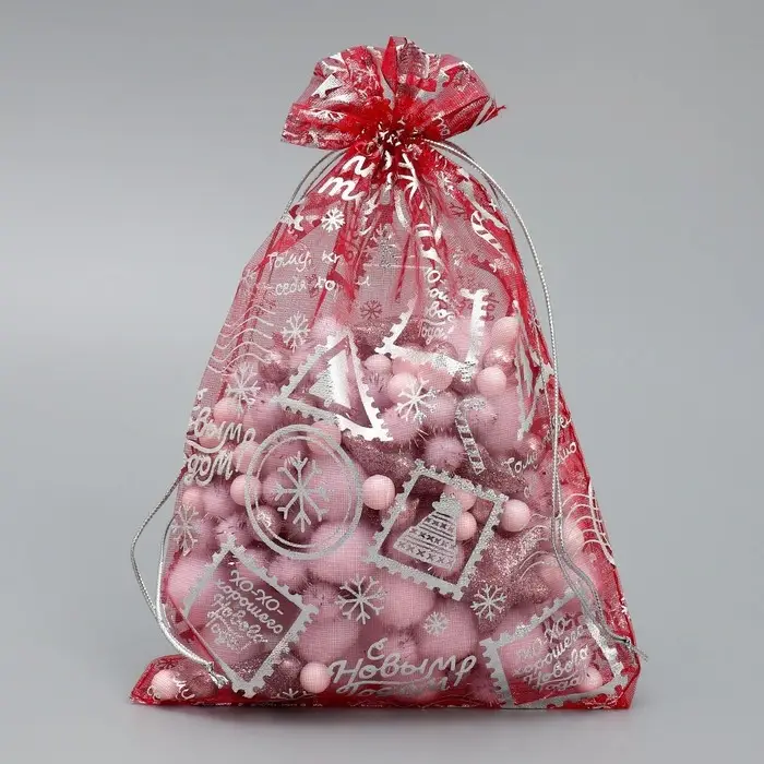 Мешочек подарочный органза «Новогодняя почта», 16 х 24 см +/- 1.5 см