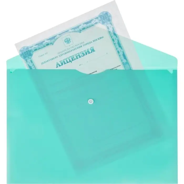 Папка-конверт на кнопке А4, 180 мкм, Calligrata Pastel, полупрозрачная, светло-мятный