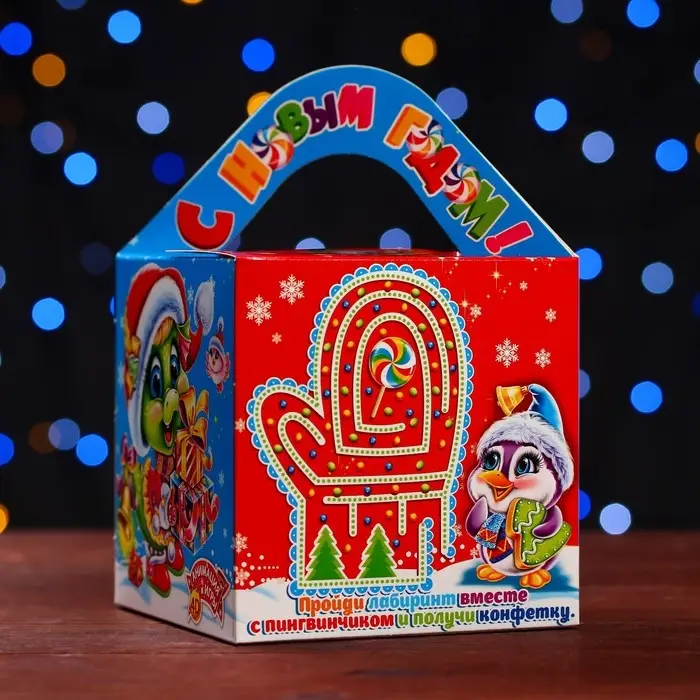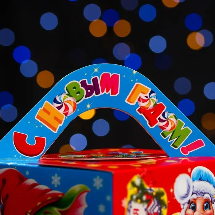Коробка выполнена из качественных материалов, которые обеспечивают сохранность содержимого. Она имеет яркий и красочный дизайн, который отражает атмосферу Нового года.