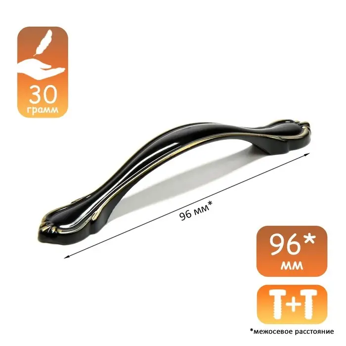 Металлическая ручка-скоба, межосевое расстояние 96 мм, выполнена в стильной комбинации черного и золотого цветов. Общая длина составляет 140 мм, что делает её идеальным выбором для большинства типов шкафов и ящиков. Безупречное сочетание классического дизайна и прочности.