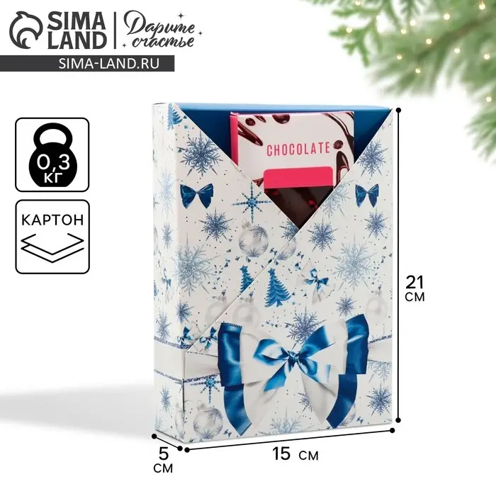 Коробка подарочная новогодняя складная «Новогодний бант», 21х 15 х 5 см