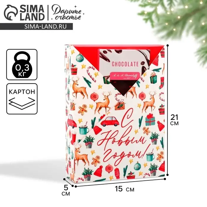 Коробка подарочная новогодняя складная «С Новым годом!», 21х 15 х 5 см