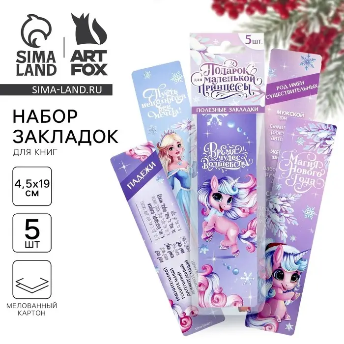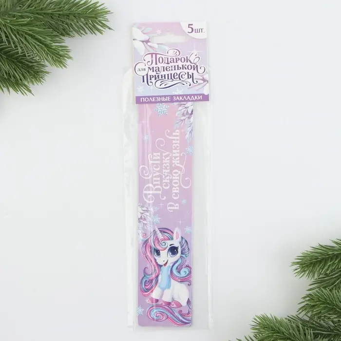 Закладки для книг картонные 5 шт. «Новый год: Подарок для маленькой принцессы»