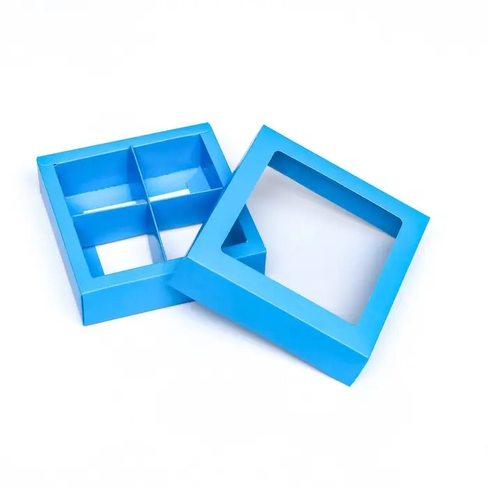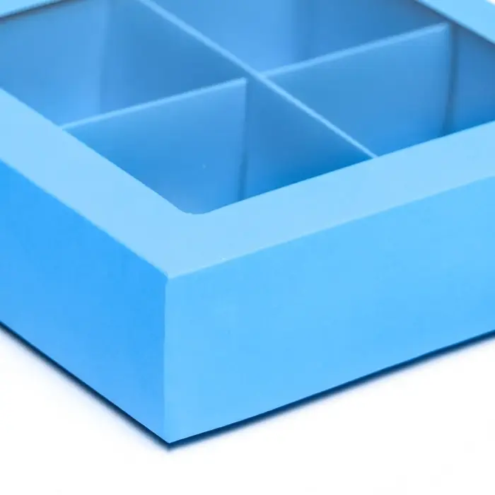 Коробка для 4 конфеты, голубой, 12.5×12.5×3.5 см