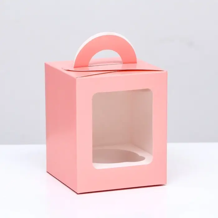 Коробка для 1 капкейка, розовая, 9.2×9.2×11.1 см