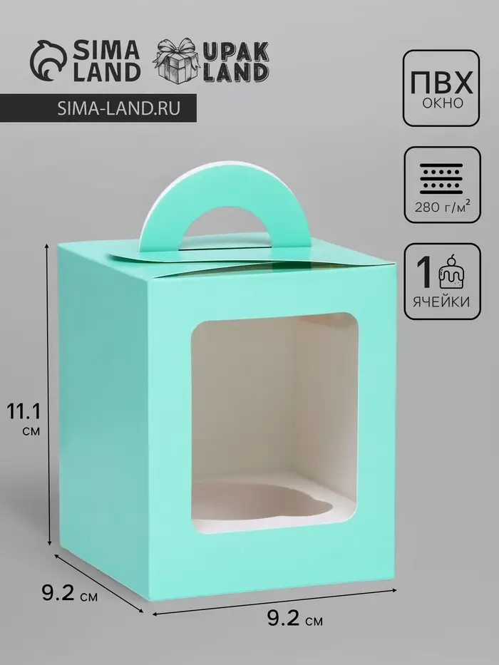 Коробка для 1 капкейка, зеледляя, 9.2×9.2×11.1 см