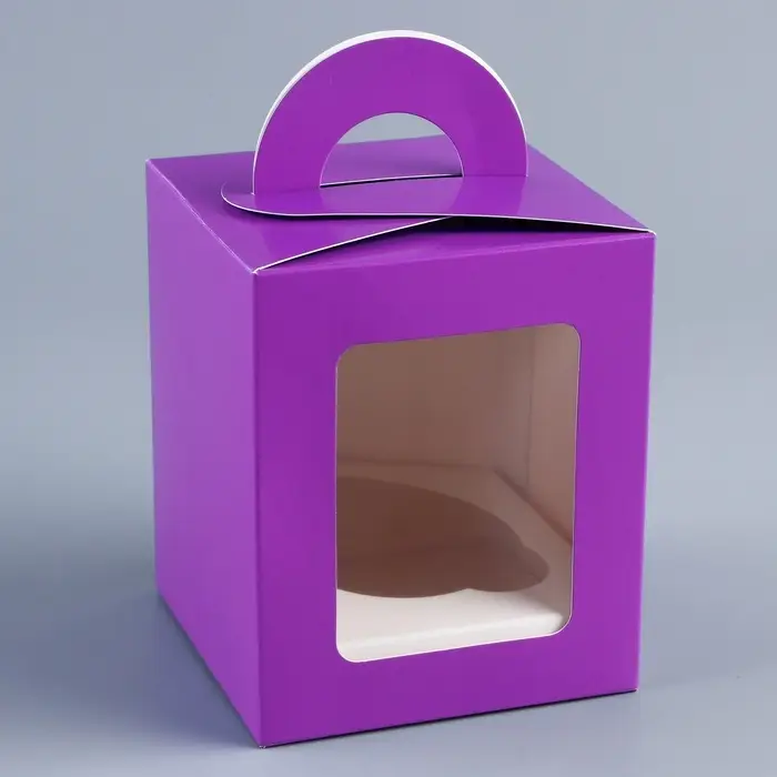 Коробка для 1 капкейк с окном, сиреневая, 9.2×9.2×11.1 см