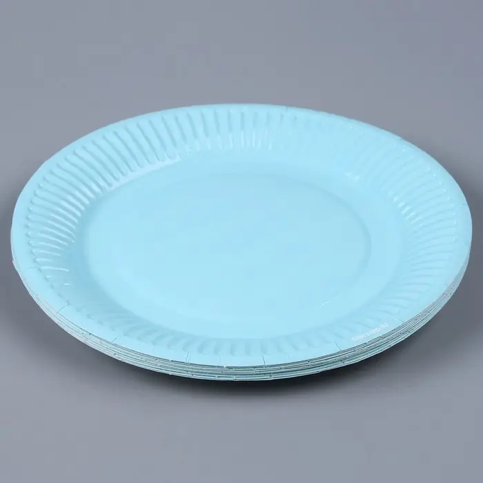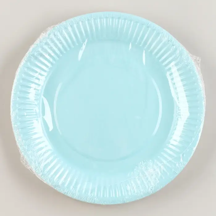 Тарелка одноразовая бумажная однотонная, голубая, 18 см