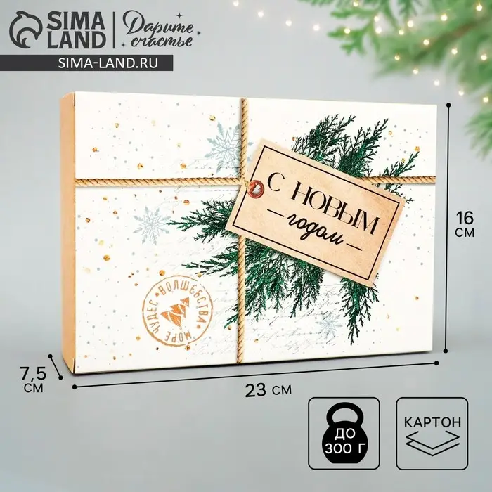 Коробка подарочная новогодняя складная «С новым годом», 16 х 23 х 7.5 см