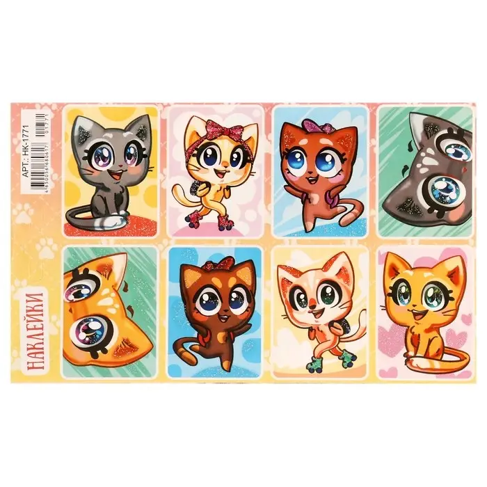 Наклейки «Аниме. Кошки» глиттер, 16×9.7 см