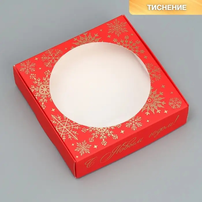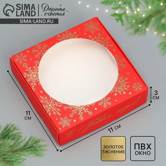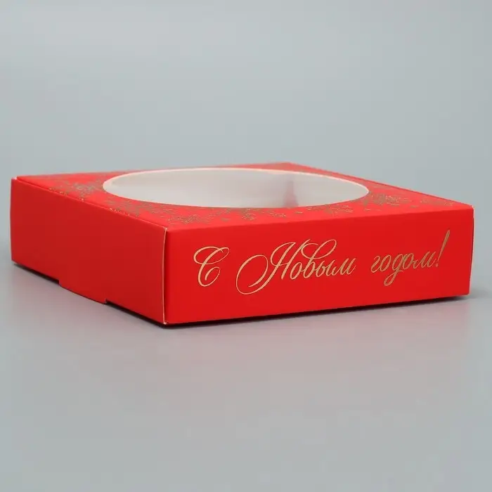 Коробка для макарун с низкими бортами «С Новым годом!», 11×11×3 см