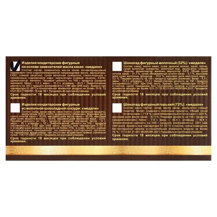 Весом всего 25 г, эта шоколадная медаль удобна для того, чтобы взять с собой в гости или подарить в качестве внимания. Она порадует сладкоежек и добавит немного волшебства в праздничную атмосферу.