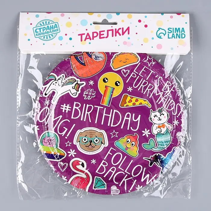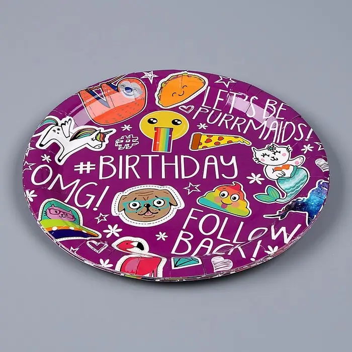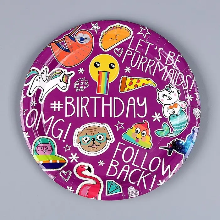 Тарелка бумажная одноразовая «День рождения», в наборе 6 шт., фиолетовая