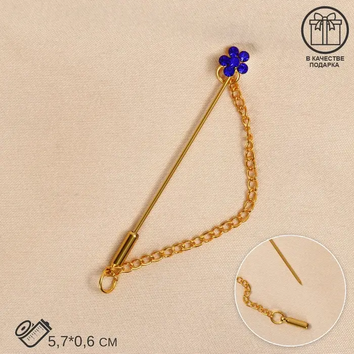Булавка «Цветок» мини с цепочкой, МИКС, 5.7 см (неделимая фасовка 12 шт., цена за шт.)