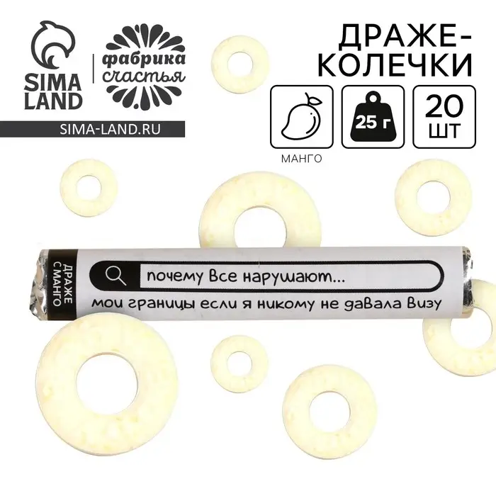 Конфеты драже колечки «Почему все нарушают мои границы» в тубусе, вкус: манго, 25 г.