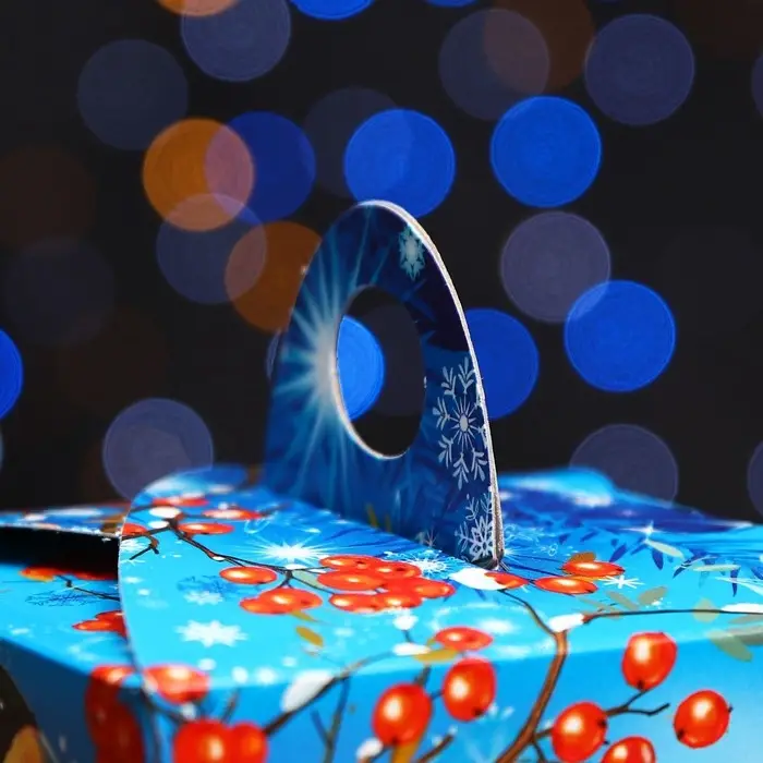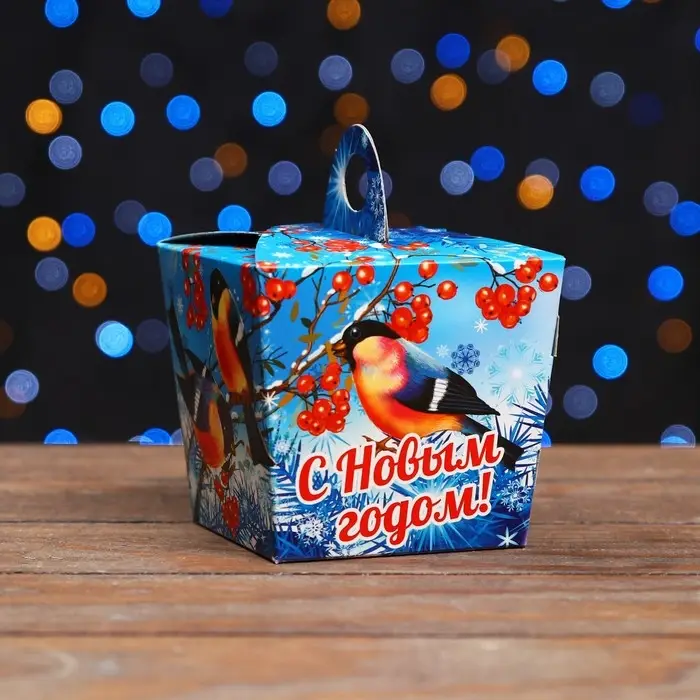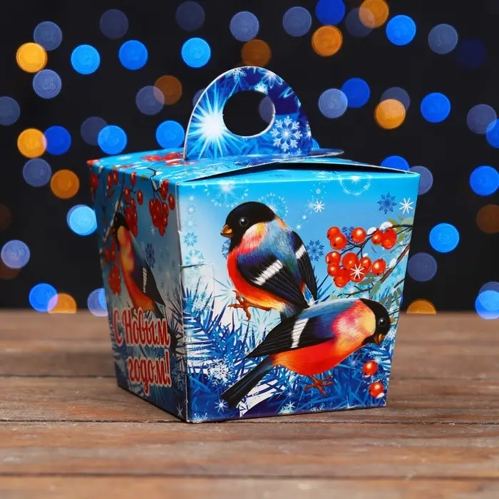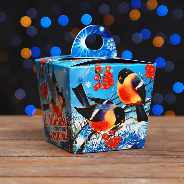 Коробка выполнена из качественных материалов, которые обеспечивают сохранность содержимого. Она имеет яркий и красочный дизайн, который отражает атмосферу Нового года.
