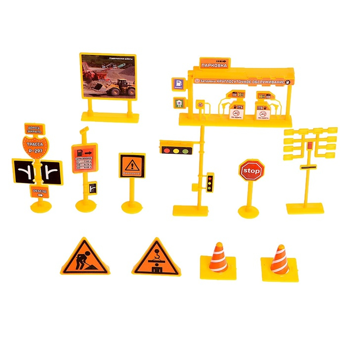 Машинки можно припарковать в гараже, в комплекте есть дорожные знаки и указатели. Благодаря им игра с машинками станет ещё увлекательнее и разнообразнее. Также она поможет ребёнку освоить основные правила дорожного движения.