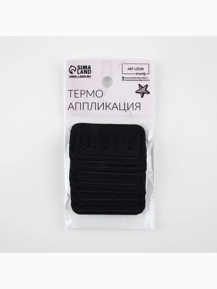 Термоаппликация Happy, 5×2.7 см, чёрная
