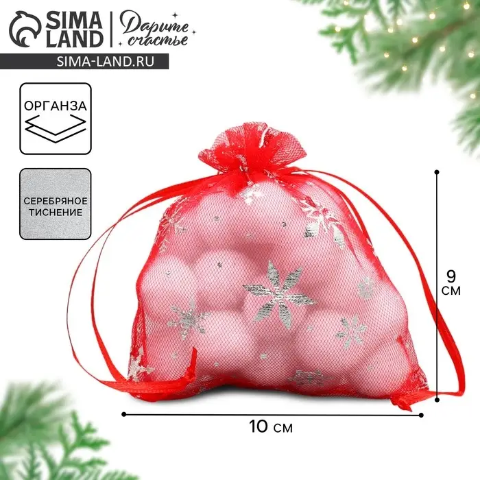 Мешочек подарочный органза «Танец снежинок», тиснение, органза, 10 х 12 см +/- 1.5 см