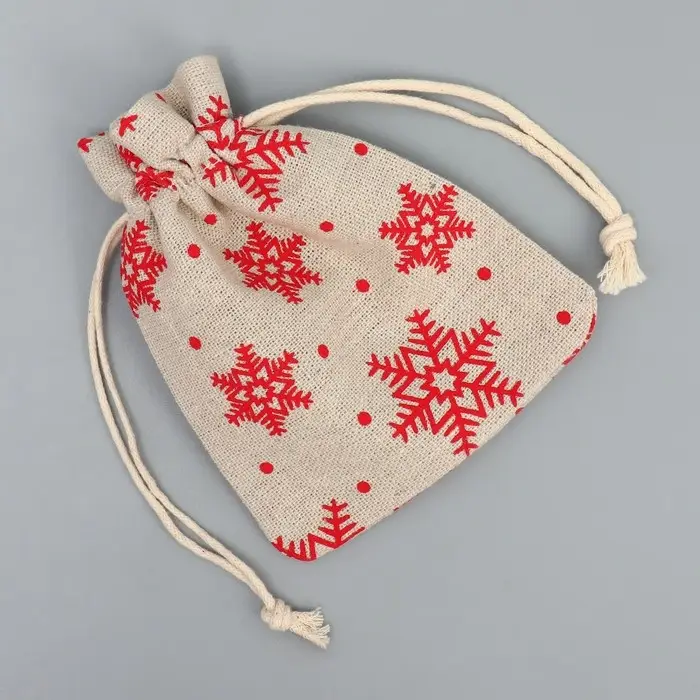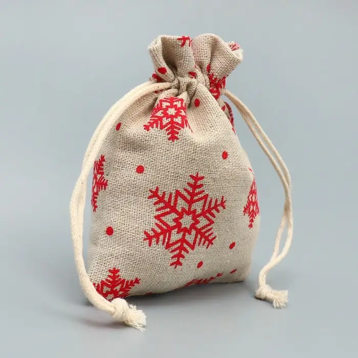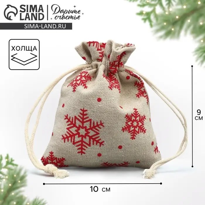 Мешочек подарочный холща «Новогодние ожидания», снежинки, холща, 10 х 12 см +/- 1.5 см