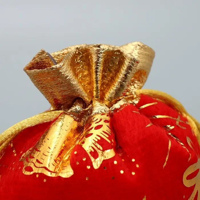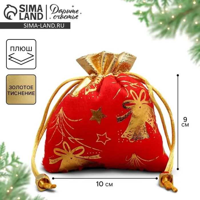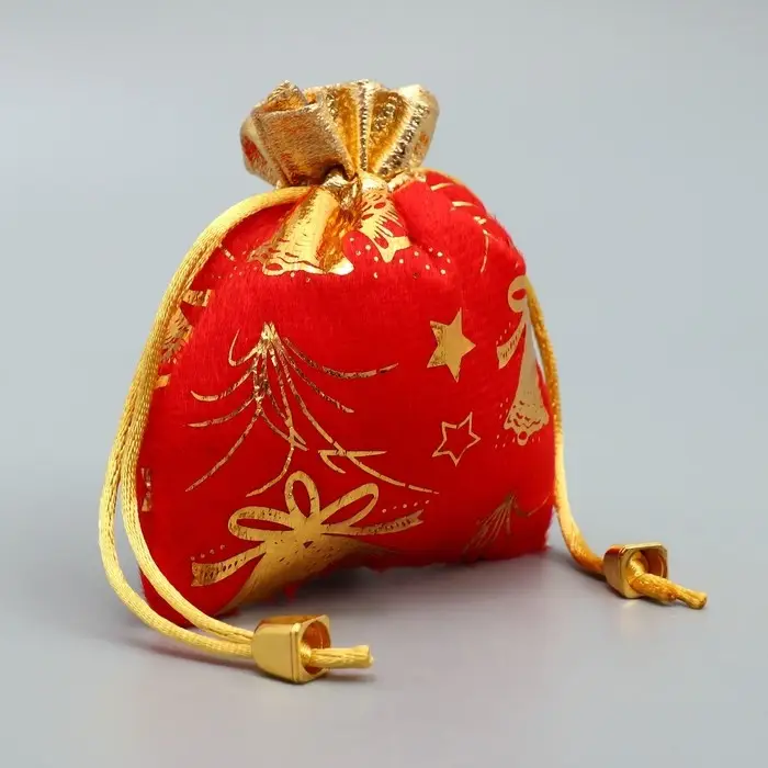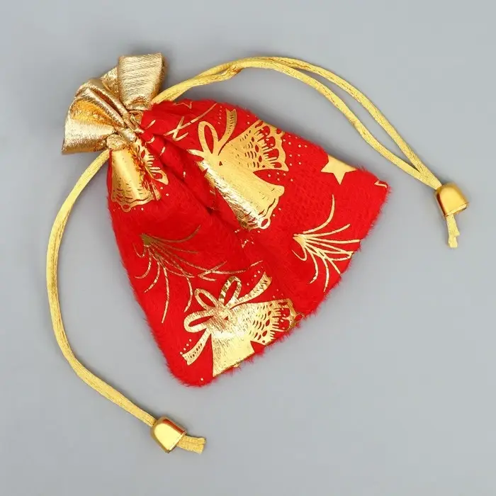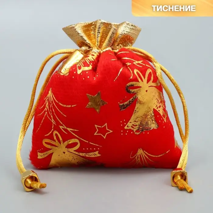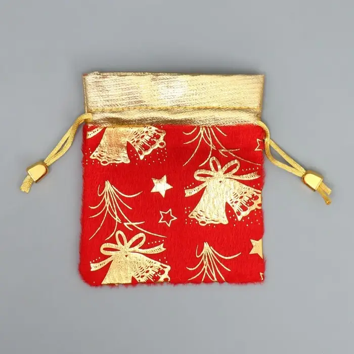Мешочек подарочный плюш «Новогодние салюты», колокольчики, тиснение, 10 х 12 см +/- 1.5 см