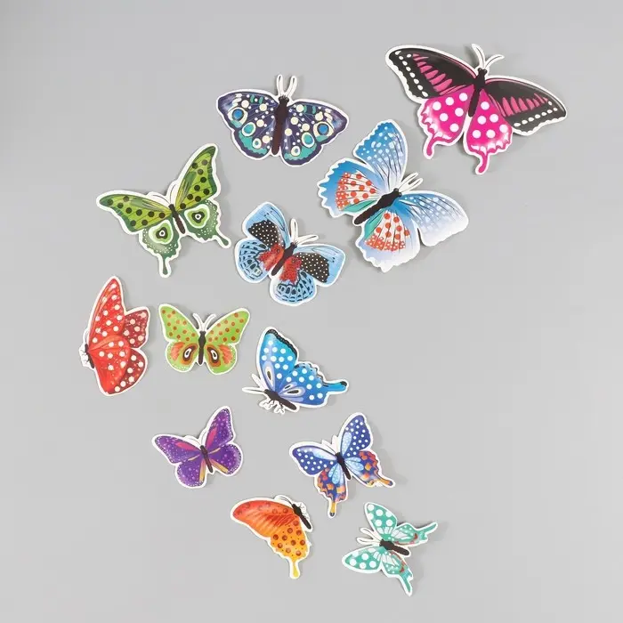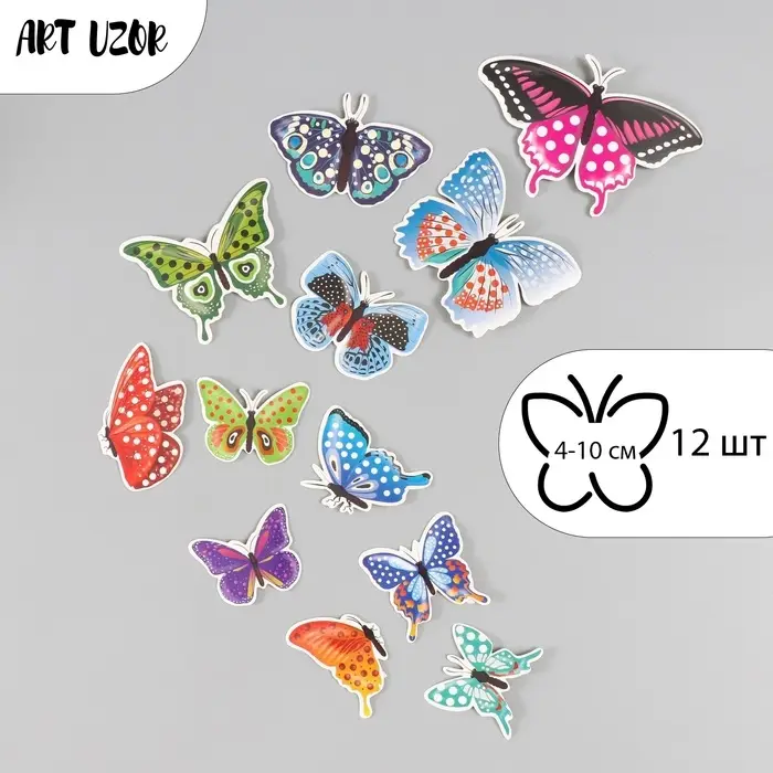Бабочки картон "Горошек" набор 12 шт h=4-10 см
