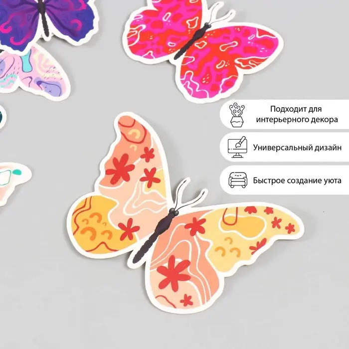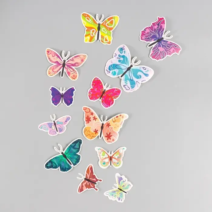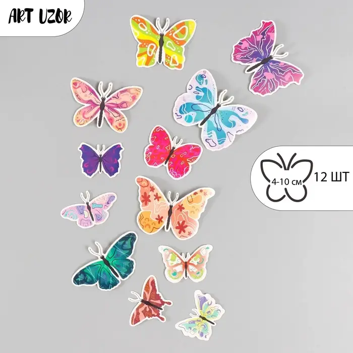 Бабочки картон "Абстракция" набор 12 шт h=4-10 см