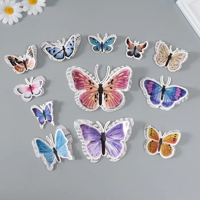 Набор магнитов на холодильник «Арт Узор. Газетные», 12 шт., картон, двойные крылья, h=4-10 см