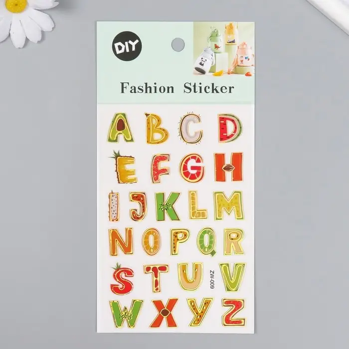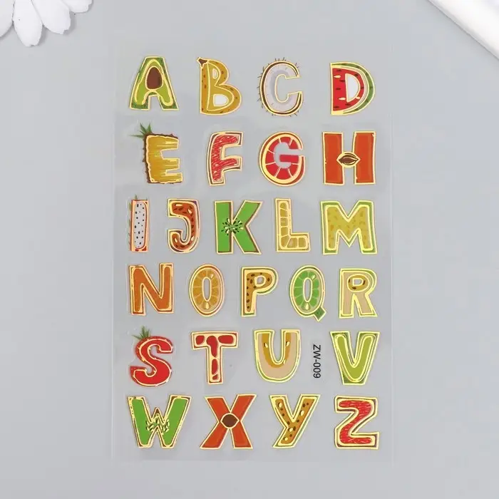 Наклейка пластик "Английский алфавит" с золотом МИКС 10,2х20,5 см