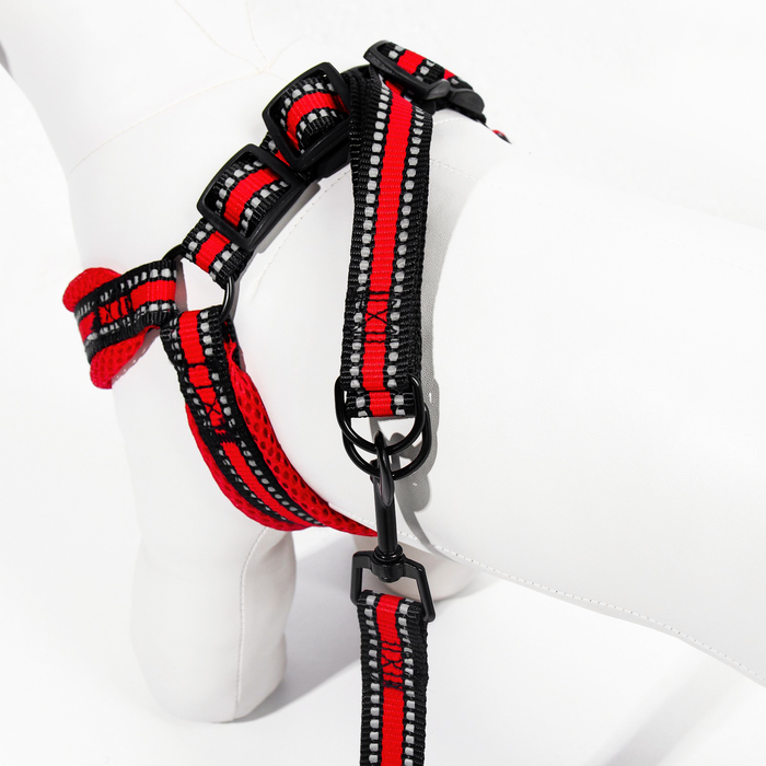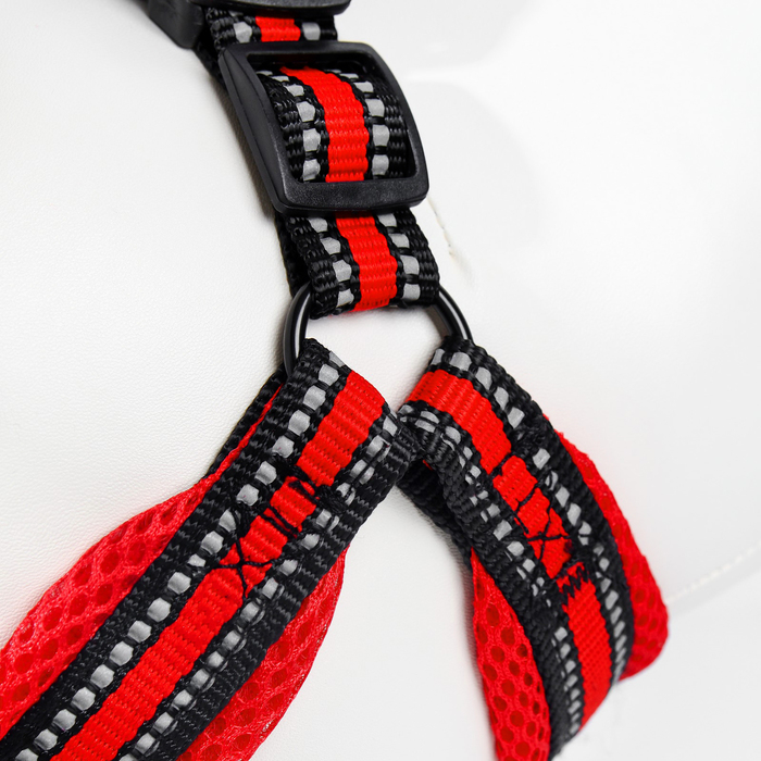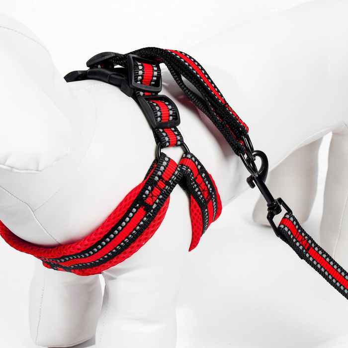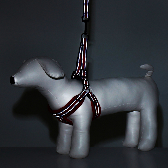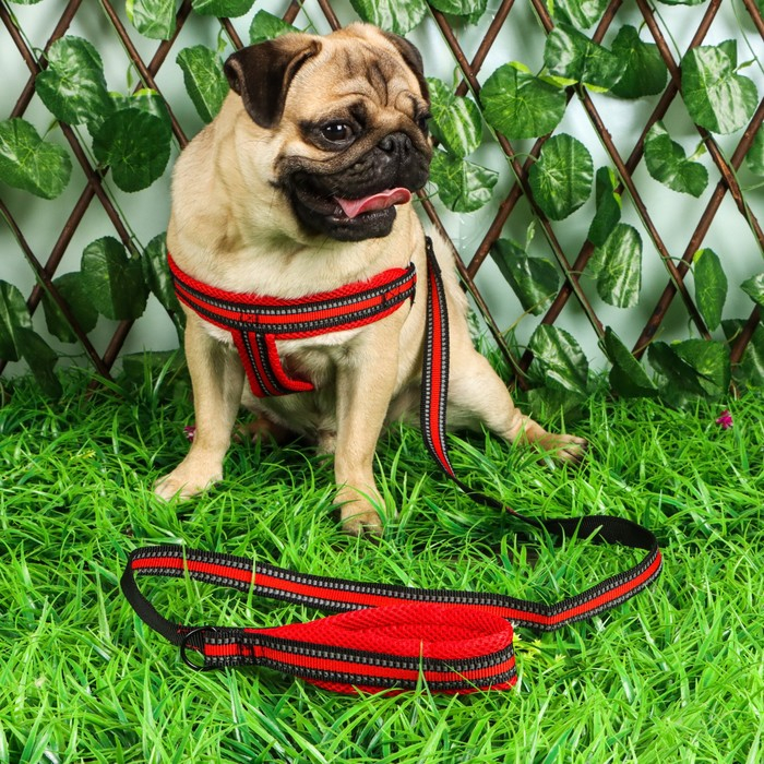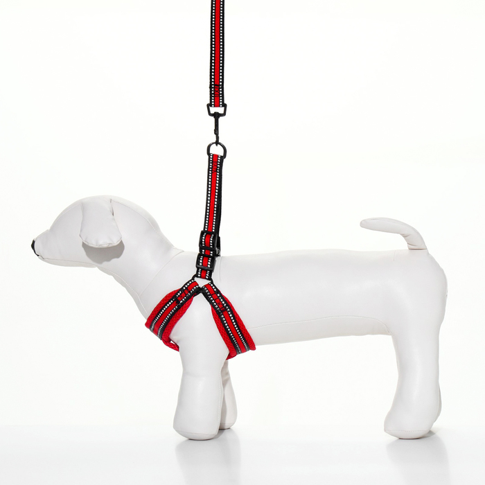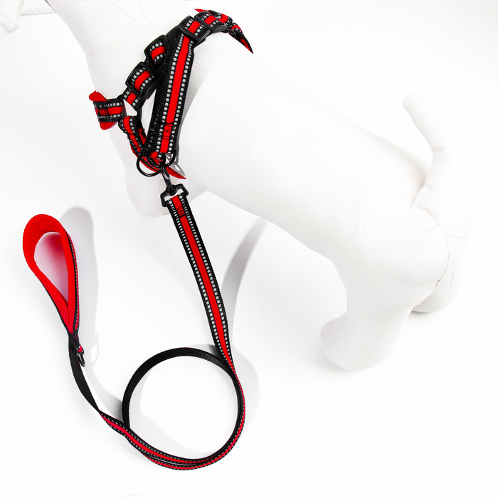 Комплект амуниции мягкий, светоотражающий, поводок 120 х 2 см, ОШ 25-72 см, красный