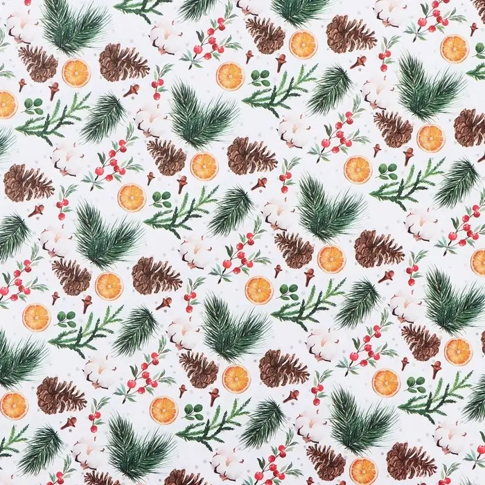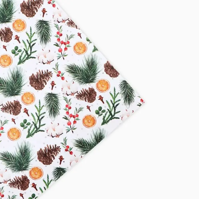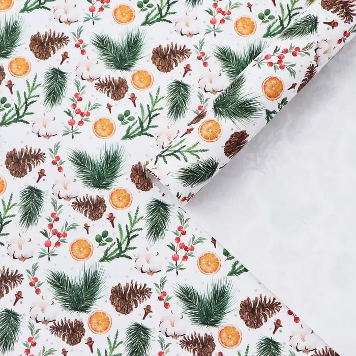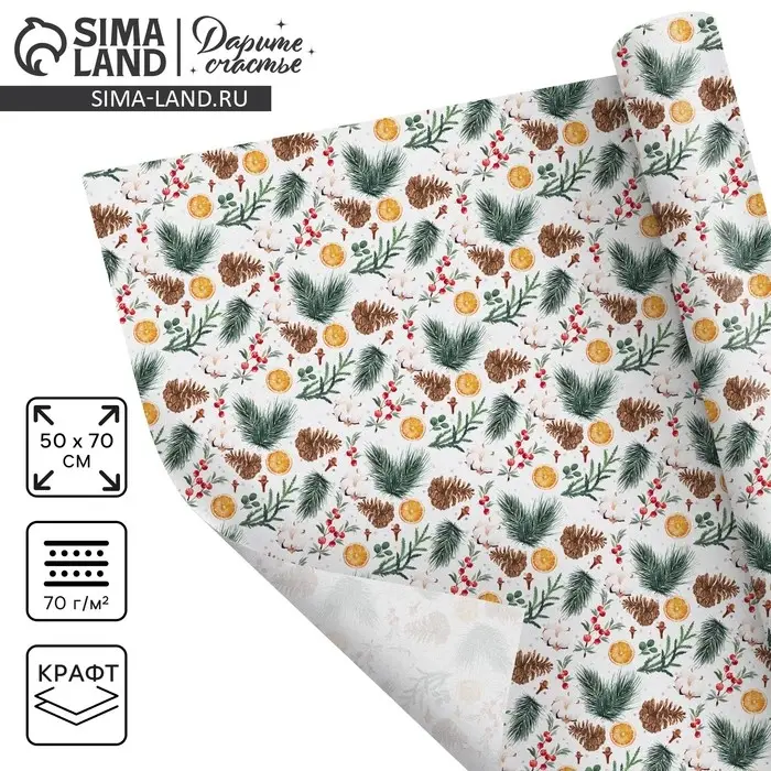 Бумага упаковочная крафтовая «Шишки и хлопок», 50 х 70 см