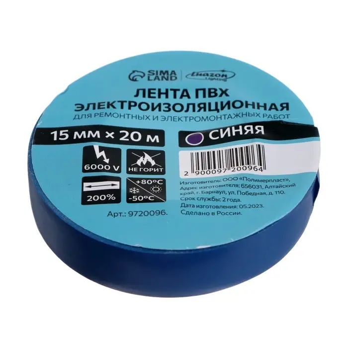 Изолента Luazon Lighting, ПВХ, 15 мм х 20 м, 130 мкм, синяя