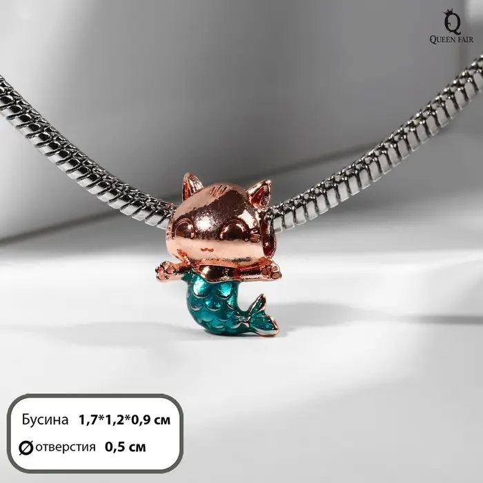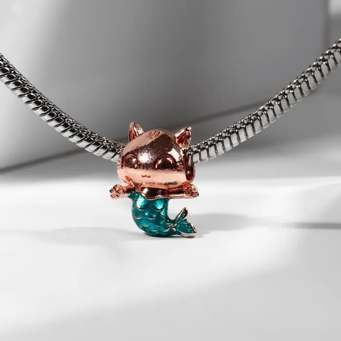 Шарм «Кошечка» русалка, цвет морской в розовом золоте