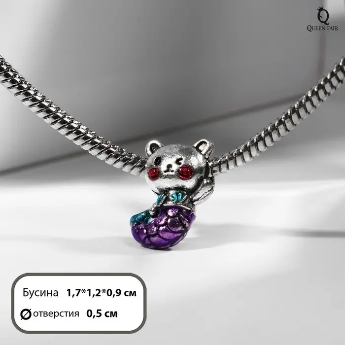 Очаровательный талисман в виде медвежонка-русалки станет прекрасным аксессуаром для любителей уникальной бижутерии. Яркие фиолетовые и разноцветные оттенки делают его идеальным подарком на такие праздники, как 8 Марта или день рождения. Упаковка из пяти штук позволяет создавать интересные наборы или радовать сразу несколько близких.